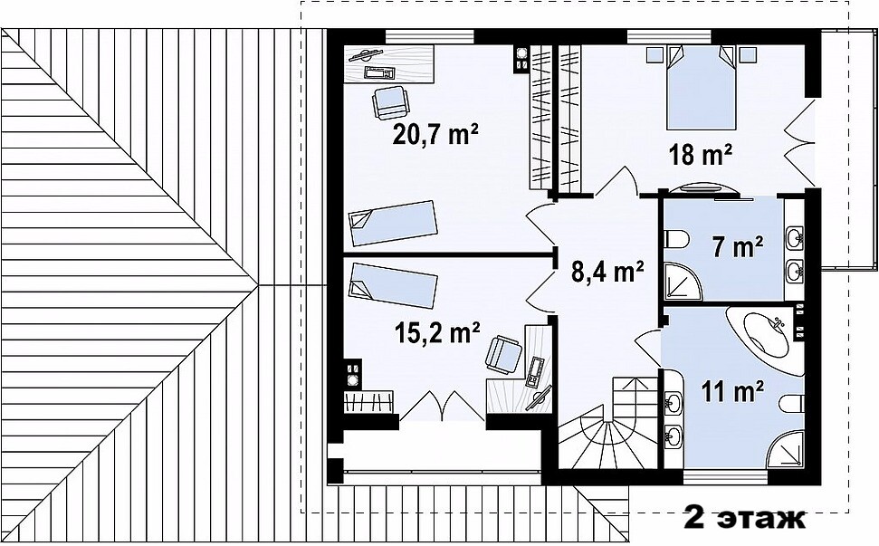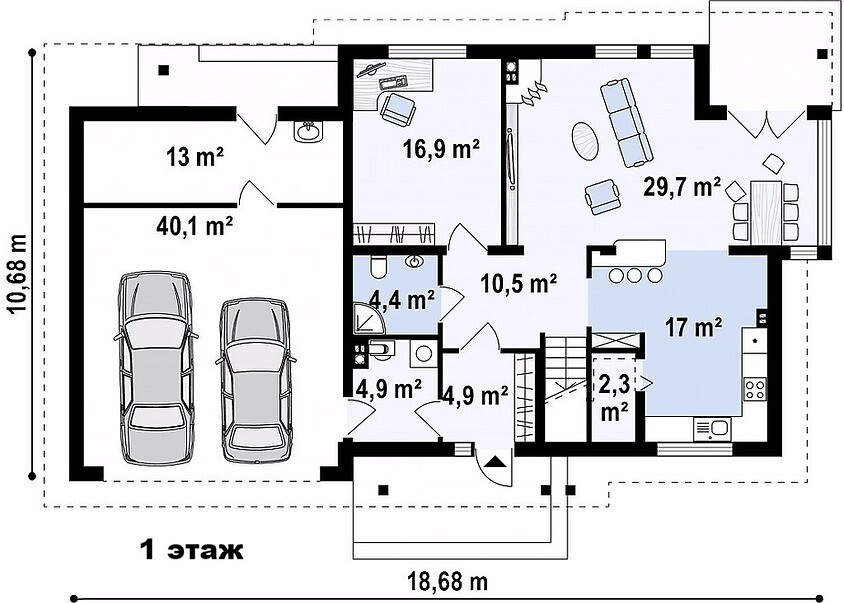 Размер дома: 10,7м х 18,7мПлощадь здания: 225,7 м2