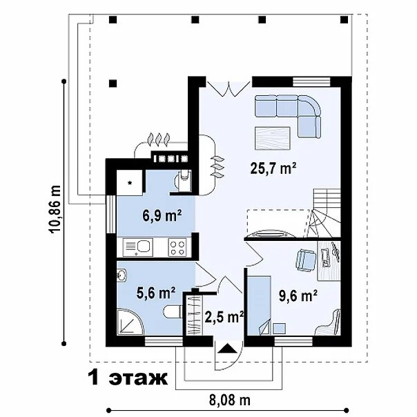 Размер дома: 10,8м х 8м